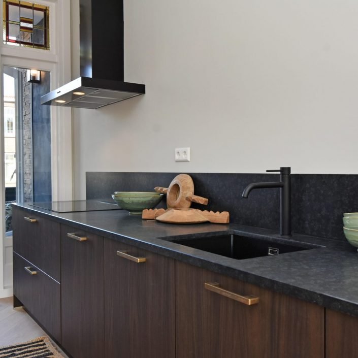 Dubbel bovenhuis aan fraaie kade, met entree op begane grond, royale woonkamer met open keuken en fijn terras op de zon. 4 slaapkamers, waarvan 1 met balkon, luxe badkamer