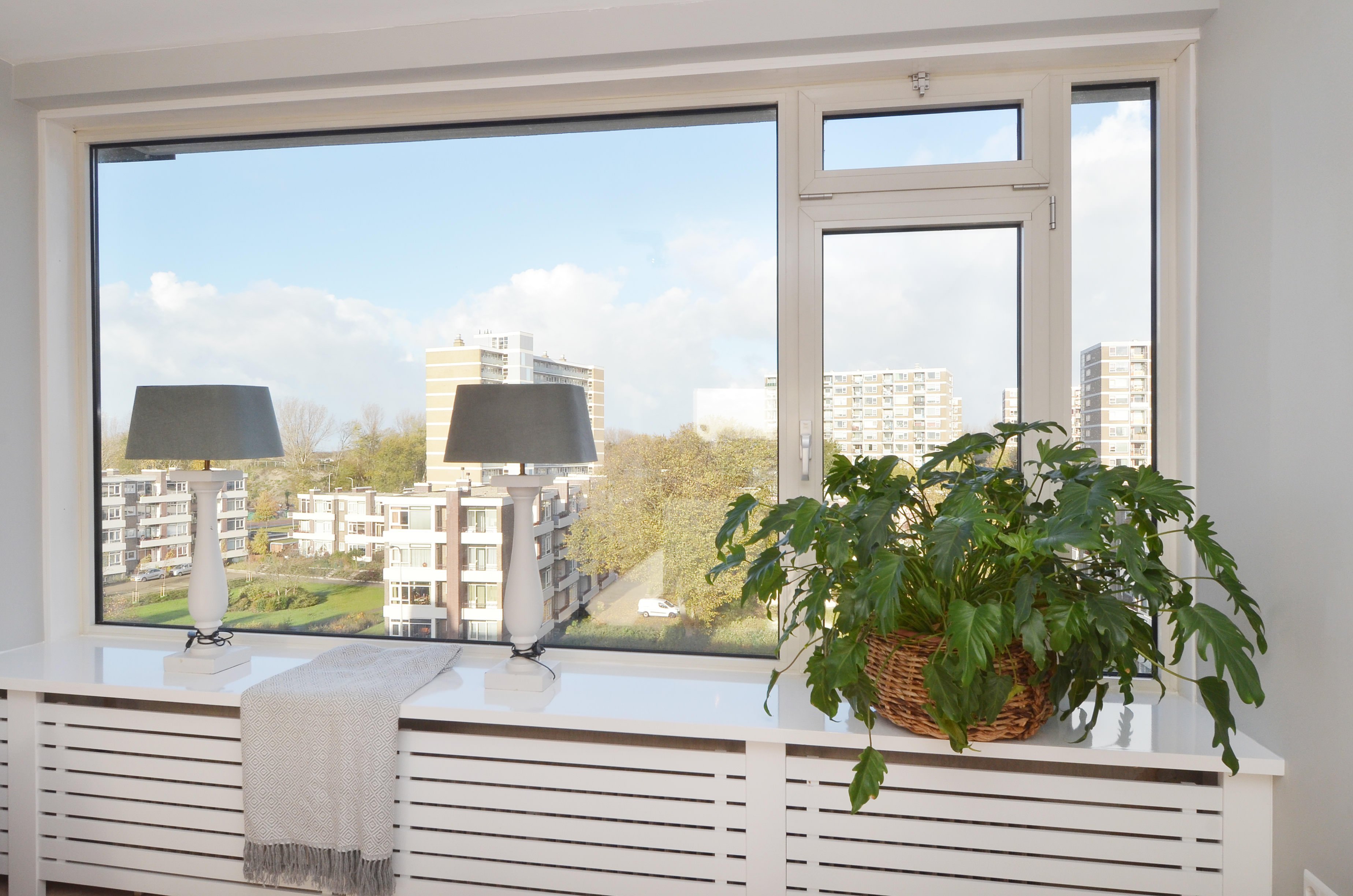 Het gehele appartement is voorzien van aluminium kozijnen met dubbel glas.