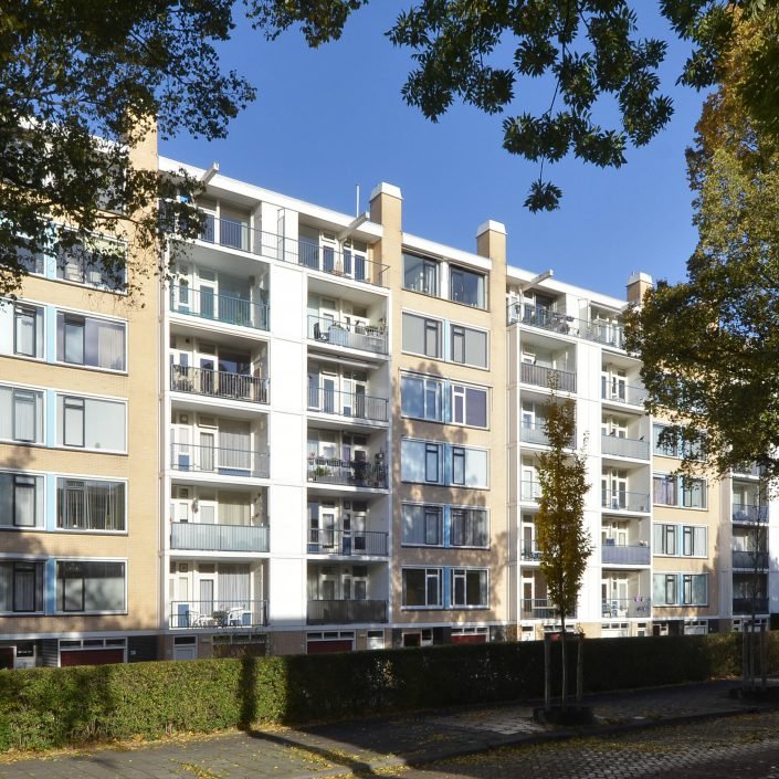 Gesloten portiek met brievenbussen- en bellentableau, via lift of trappenhuis naar 6e verdieping.